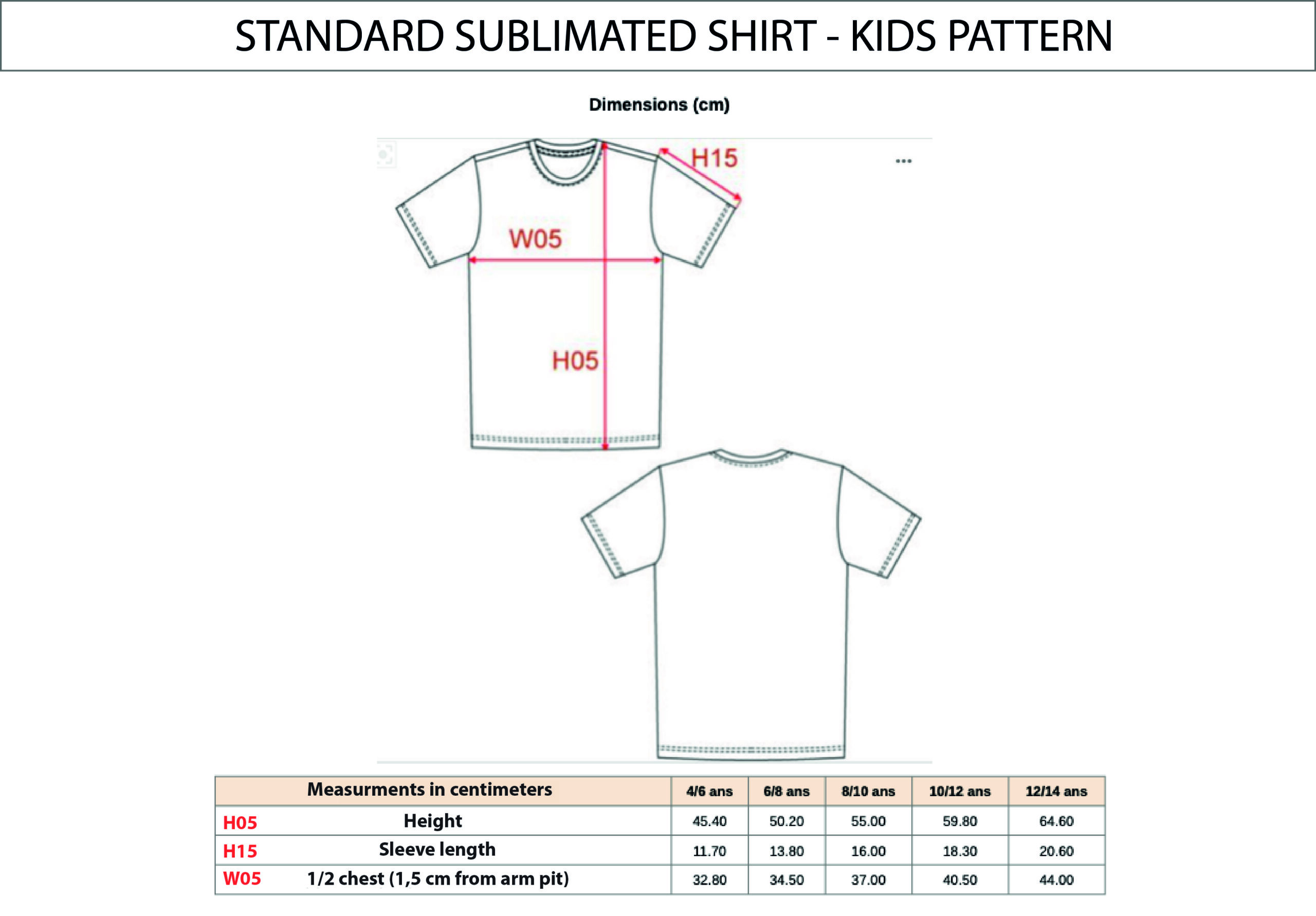 • Enfant (4/6 ans – 6/8 ans – 8/10 ans – 10/12 ans – 12/14 ans)